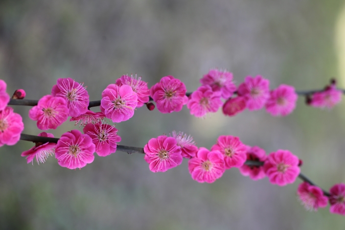 ‘红颜朱砂’ ‘红颜朱砂’由浙江农林大学团队选育,2018年获授植物新品种权,2019年通过省林木良种审定。该品种花色艳丽持久,适宜观赏期相比主栽品种延长15天,采用嫁接繁殖,嫁接繁殖成活率达95%以上,在浙江省不同地形或不同生境条件下均可正常生长,观赏性和适应性显著高于同类品种,可用于园林绿化、盆栽观赏,还可提炼香精等。从2020年开始,‘红颜朱砂’及研发相关成果在湖州、杭州、绍兴、金华、丽水等地进行推广实施,推广应用面积 3万多亩,新增产值9100万元,不仅致富了一批苗农,而且优化了当地苗木种植品种结构,丰富了梅花产品类型。