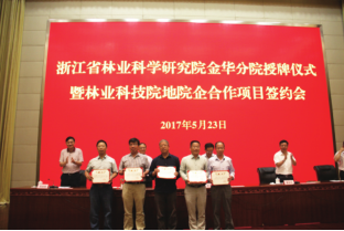 5 月 23 日下午,省林科院分院工作会议在金华市召开。省林业厅巡视员吴鸿出席会议并讲话,省林业厅相关处室、金华市林业局局长、7 个分院和浙南(温州)林科院负责人参加了座谈交流,并就省林科院分院合作项目——《浙江省珍贵树种发展关键技术研究与继承示范》建议书的相关内容进行了讨论。