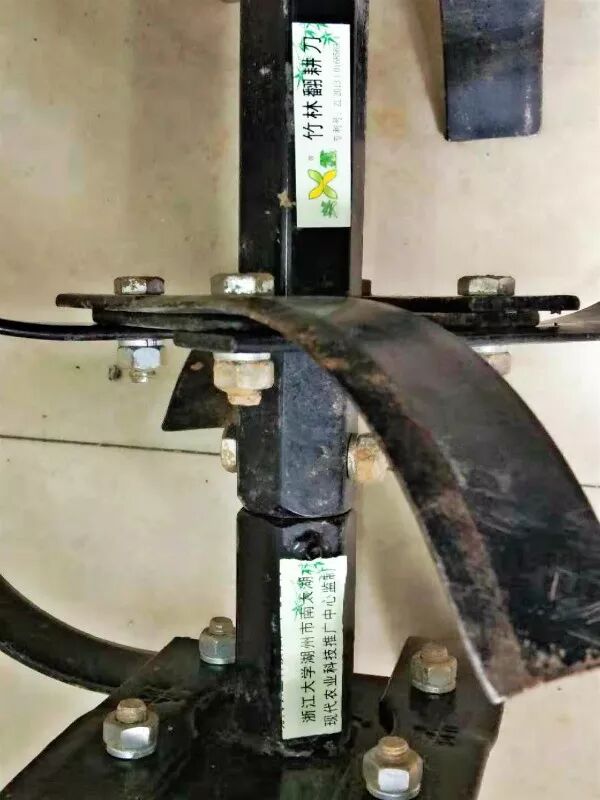 L型耕作刀具是一种土壤翻耕刀,用于作物换茬和蔬菜种植,发明至今已一百多年。竹林微耕机所用的翻耕刀是在L型刀具的基础上,针对竹林地下竹鞭和苗圃地地下根系而开发的,主要从角度、弧度和结构材料入手,规避地下竹鞭、地下根系缠绕、卡死或过载导致发动机死机、熄火,达到微耕目的。