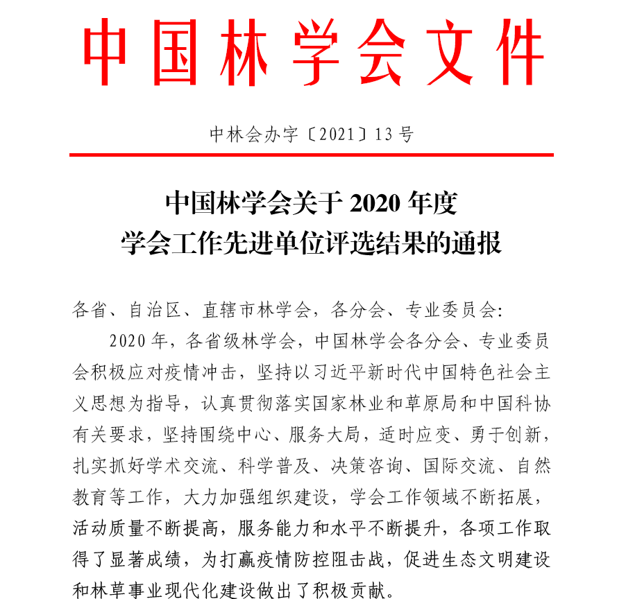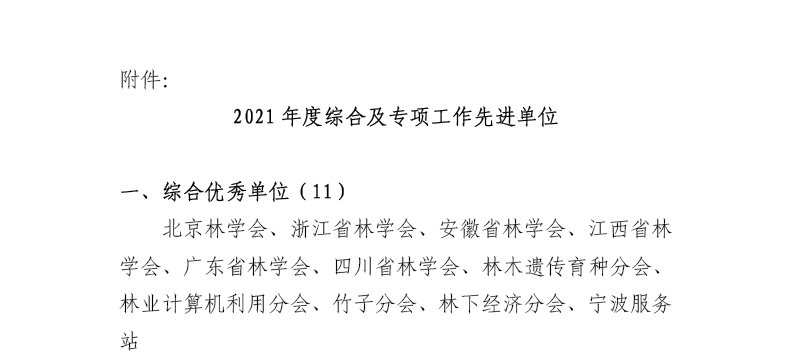 3月2日,中国林学会以线上+线下形式在北京召开2022年全国林学会秘书长会议,会上表彰了2021年度综合优秀单位及专项工作先进单位,浙江省林学会和中国林学会宁波服务站名列其中,全国仅6家省级学会被评为综合优秀单位。我省林学会自评选综合优秀单位起,连续7年获此殊荣。